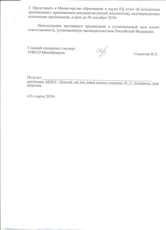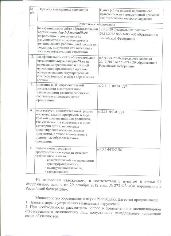 Предписания органов, осуществляющих государственный контроль (надзор) в сфере образования, отчеты об исполнении таких предписаний (при наличии)